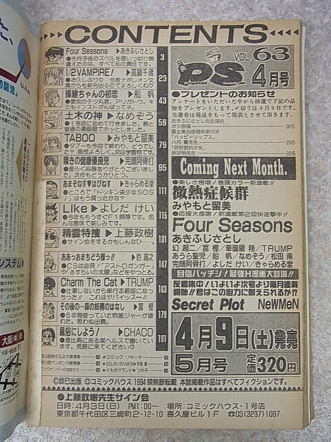 • COMIC PS ペンギンクラブ山賊版 1994年4月号 VOL.63(平成6年) 辰巳出版 【2】